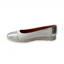 Balerini dama albi cu imprimeu argintiu si talpa joasa Harpi, Piele Naturala