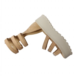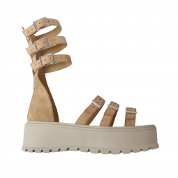 Sandale Nude pentru Femei, din Piele Intoarsa, cu Talpa Inalta Melania si Catarame, Imprimeu Sarpe