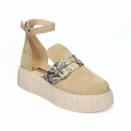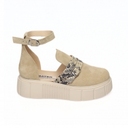 Balerini dama bej cu talpa joasa si imprimeu floral Despa, Piele Naturala