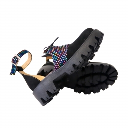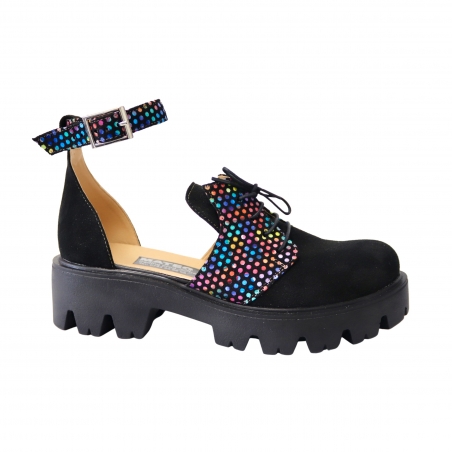 Sandale Femei, cu Funda si Platforma, Imprimeu Multicolor, Piele Naturala, Amanda