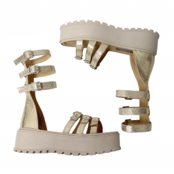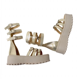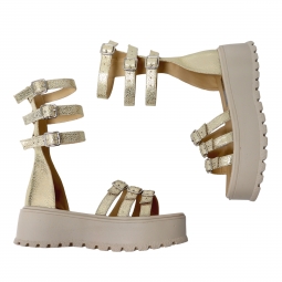 Sandale Dama cu Barete Aurii, Platforma Roma, Piele Naturala