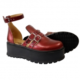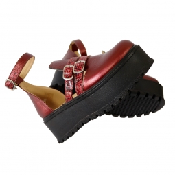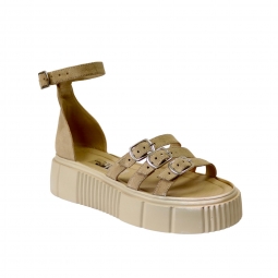 Sandale Dama Gri cu Platforma si Catarame, Piele Naturala