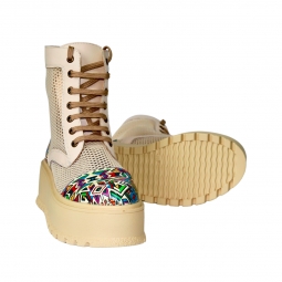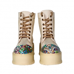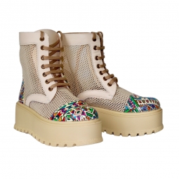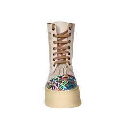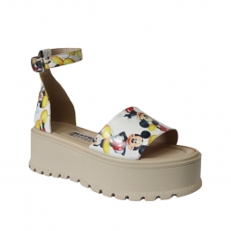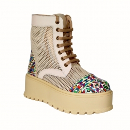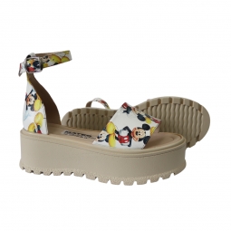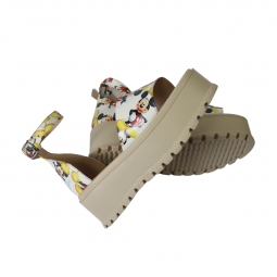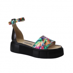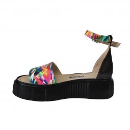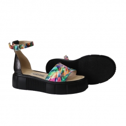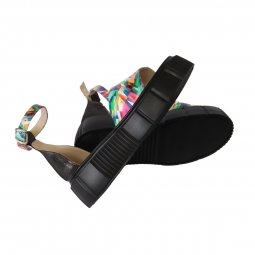Sandale Dama din Piele Naturala, Imprimeu Colorat, Talpa Inalta si Catarama