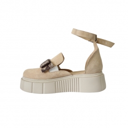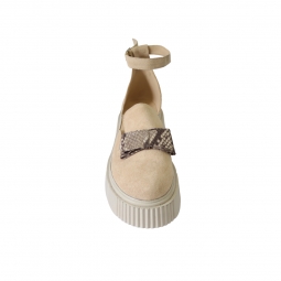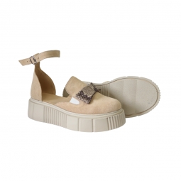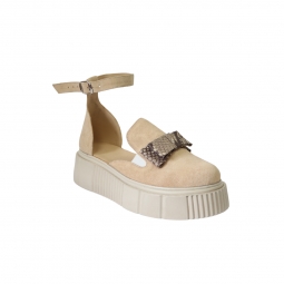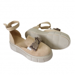 Sandale dama nude, cu imrprimeu sarpe, inchise la varf, cu fundita si platforma, Giulia din Piele Intoarsa. Au un calapod cu o forma care permite o incaltare usoara si ofera confort in timpul mersului. Captuseala subtire mentine constanta temperatura picioarelor fara transpiratie.