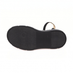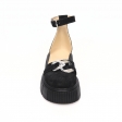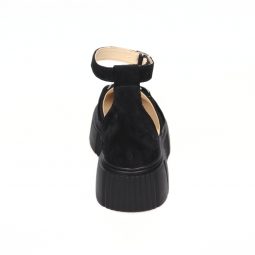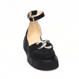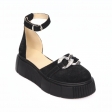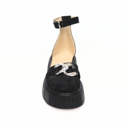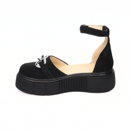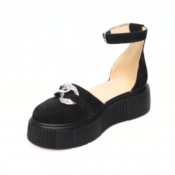 Sandale dama negre, inchise la varf, cu accesoriu metalic si platforma, Giulia din Piele Intoarsa. Au un calapod cu o forma care permite o incaltare usoara si ofera confort in timpul mersului. Captuseala subtire mentine constanta temperatura picioarelor fara transpiratie.