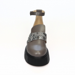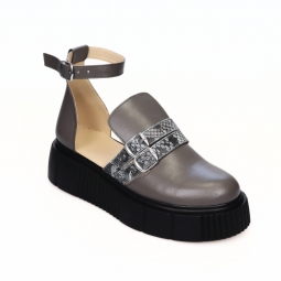 Sandale Dama Piele Naturala cu Talpa Inalta Miruna, Gri cu Imprimeu Sarpe, cu Barete, Inchise in Fata
