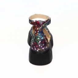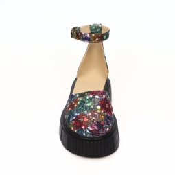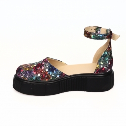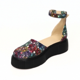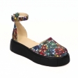 Sandale dama multicolor, inchise la varf, cu fundita si platforma, Giulia din Piele Intoarsa. Au un calapod cu o forma care permite o incaltare usoara si ofera confort in timpul mersului. Captuseala subtire mentine constanta temperatura picioarelor fara transpiratie.