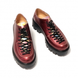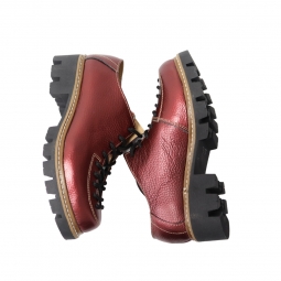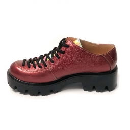Pantofi rosii cu siret si talpa groasa Louisa, Piele Naturala