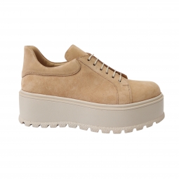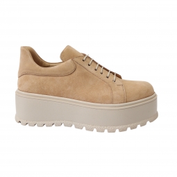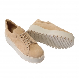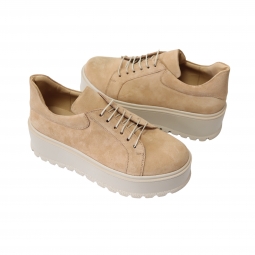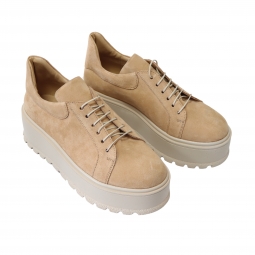 Pantofi Femei Bej cu Platforma si Siret, Piele Naturala Amanda