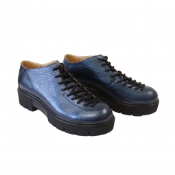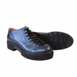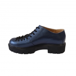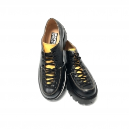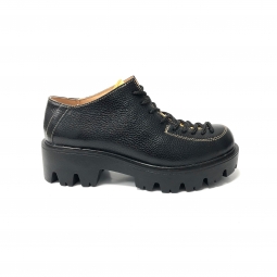 Pantofi cu talpa groasa dama negri cu siret Louisa, Piele Naturala