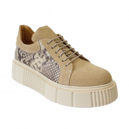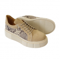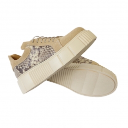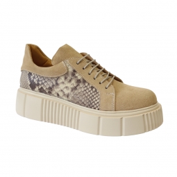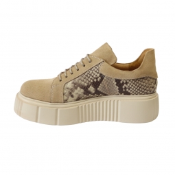 Pantofi Nude Dama cu Talpa Groasa Giulia, din Piele Naturala Intoarsa, cu Imprimeu Sarpe