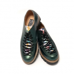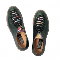 Pantofi Dama Verzi cu Talpa Inalta, Imprimeu Colorat si Siret, Piele Naturala Miruna
