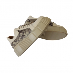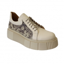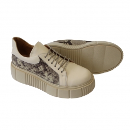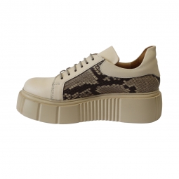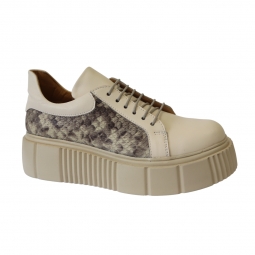 Pantofi Dama Bej cu Imprimeu Sarpe, Siret si Talpa Inalta Giulia, din Piele Naturala