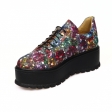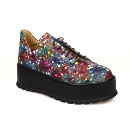 Pantofi dama multicolori cu platforma din piele naturala cu talpa flexibila, comoda si rezistenta la uzura. Au un calapod cu o forma care permite o incaltare usoara si ofera confort in timpul mersului.