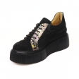 Pantofi Casual Negri de Femei, din Piele Naturala Bizonata, cu Talpa Inalta si Siret Giulia